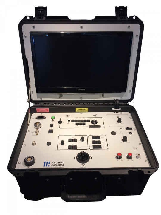 The PIS35 is a portable camera control unit for the Ahlberg N35HR high-radiation tolerant monochrome tube camera. Fitted in a case, it hosts the same features as the rack-mounted CCU35